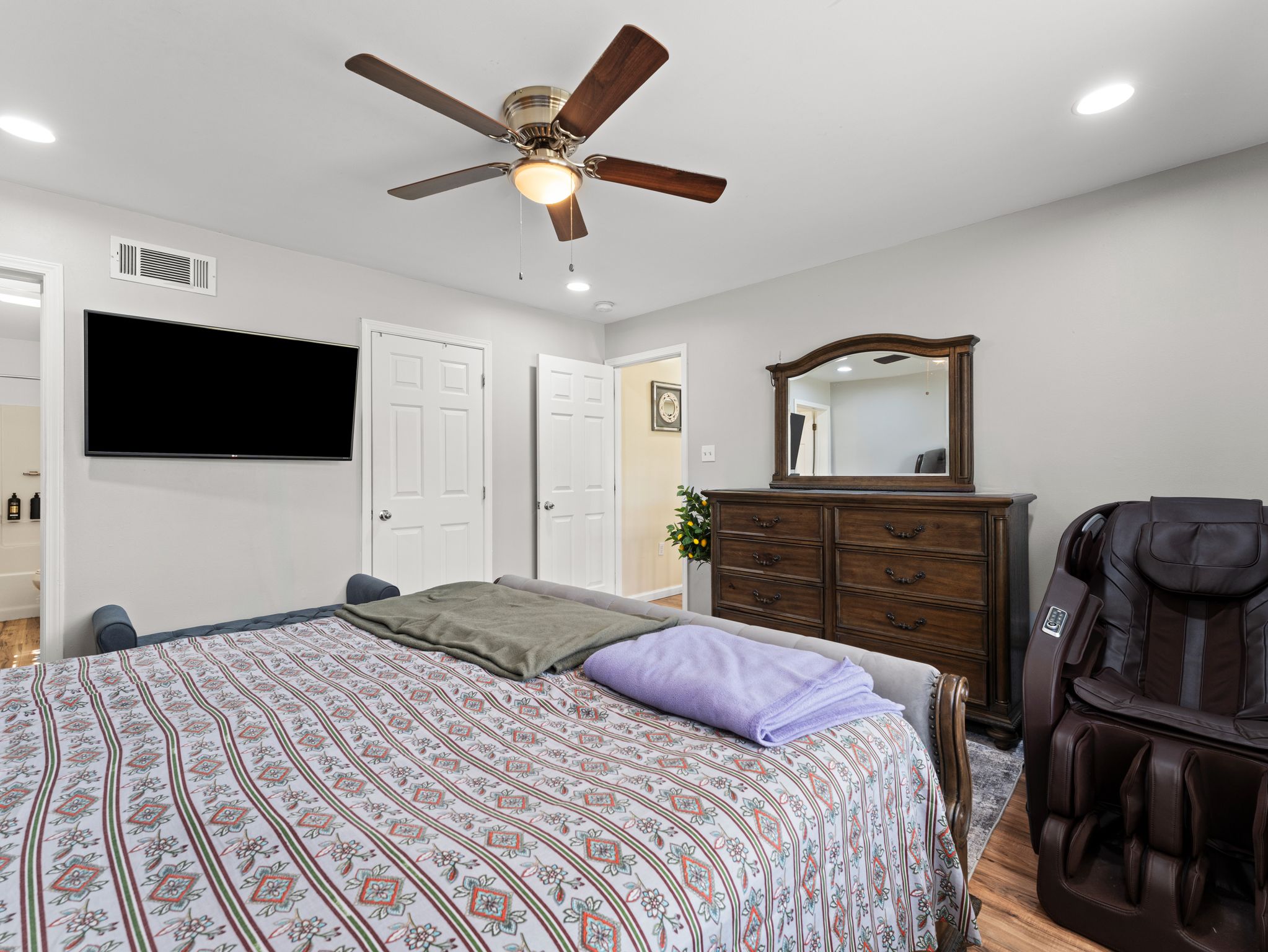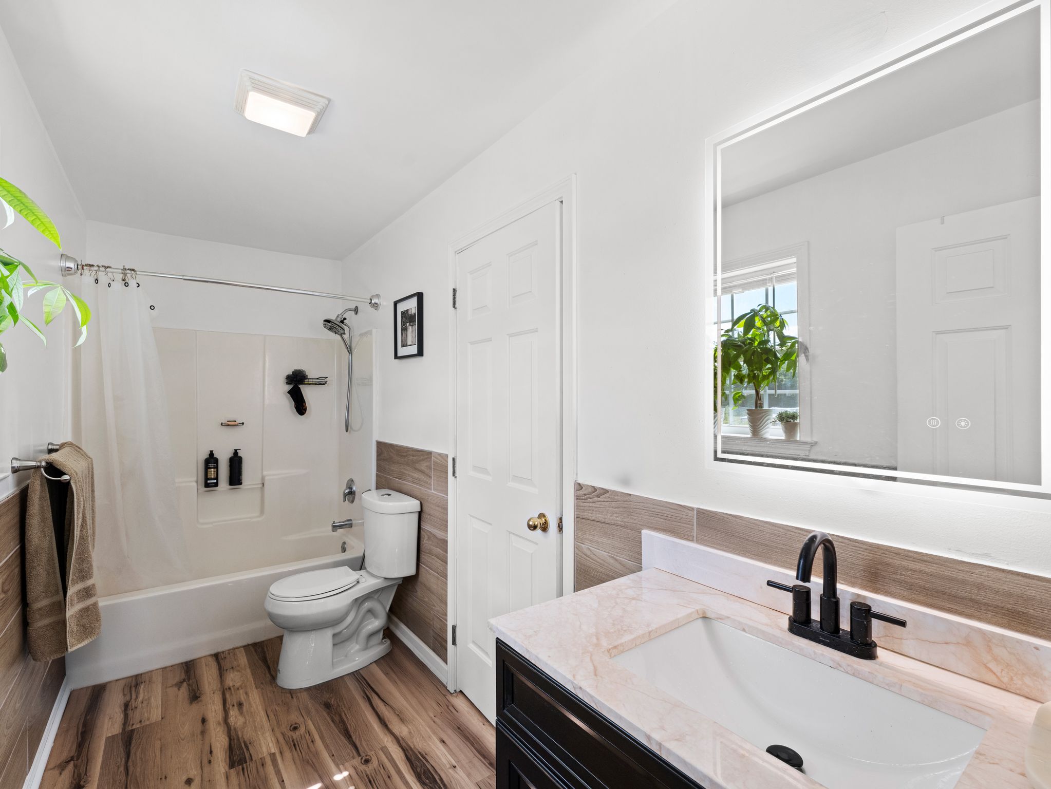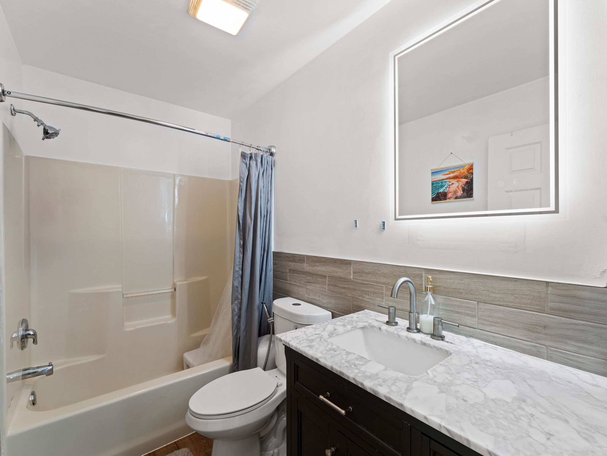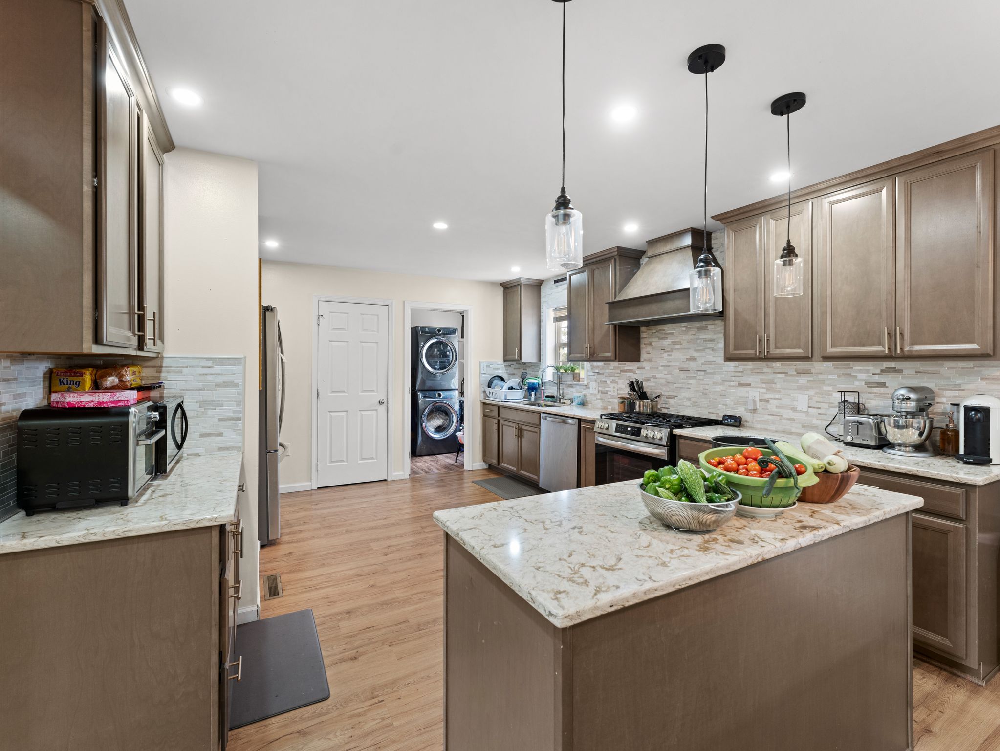 Newly renovated in 2023, this stunning home is fully upgraded with modern finishes inside and out! Featuring 2 master suites, all-new plumbing and electrical systems, and completely remodeled bathrooms. The upgraded kitchen includes new counters, cabinets, flooring, and a large island with breakfast seating. Enjoy the spacious upstairs living room, while the downstairs boasts a very large family room, perfect for gatherings. Step outside to a large second-floor deck with direct access to the backyard, ideal for entertaining or relaxation. Additional highlights include upgraded light fixtures, Bluetooth-enabled bathrooms, and a huge backyard with potential to add more rooms if desired making this home perfect for extended families. Properly licensed and ready for its new owners to move in and enjoy!